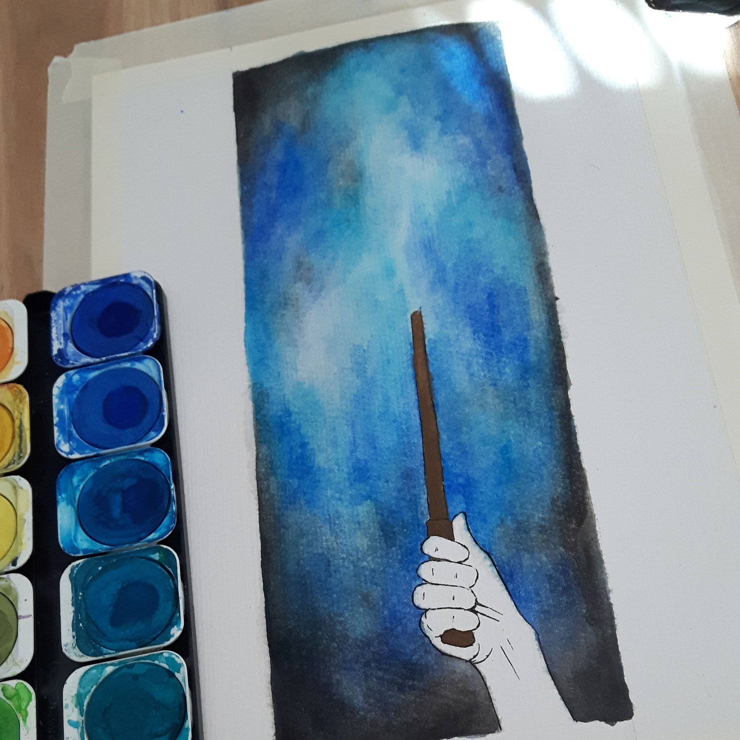 Arbeitsschritte sowie Materialien zu dem Bild "der Patronus"